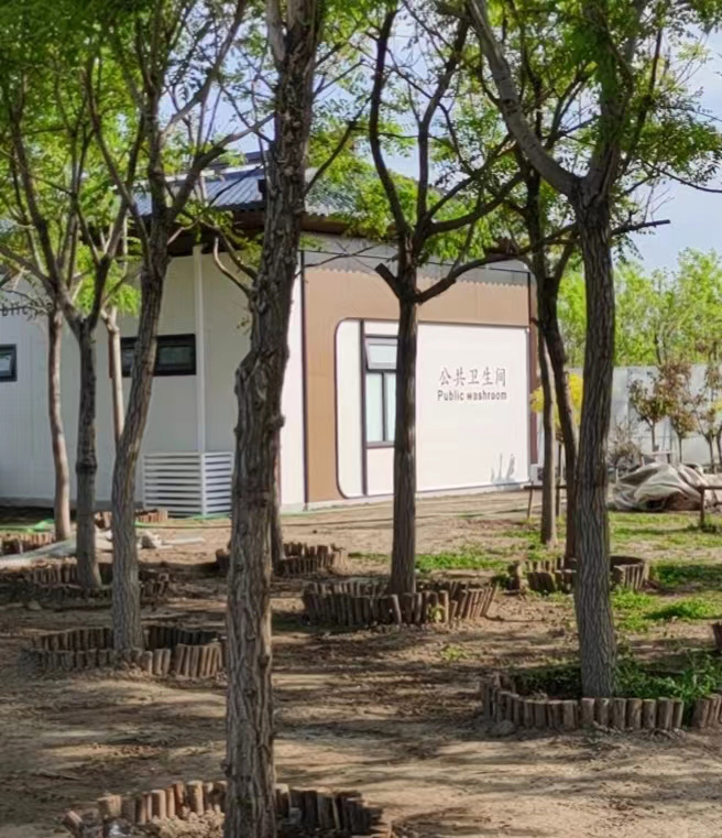 本項(xiàng)目位于天津市中新生態(tài)城媽祖文化園內(nèi)東南角綠化帶處。該建筑為箱體組合裝配式公共衛(wèi)生間,占地面積87.6平方米,廁所基礎(chǔ)為150mm厚C20砼墊層,200mm厚C30鋼筋混凝土墊層。