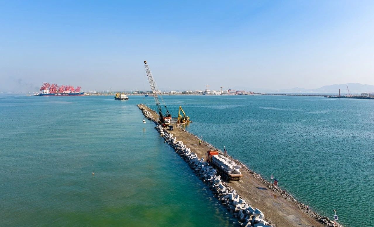1座工作船碼+直立岸壁,主要包括基槽挖泥、基槽拋石、方塊+卸荷板安裝、胸墻澆筑、附屬設施安裝。